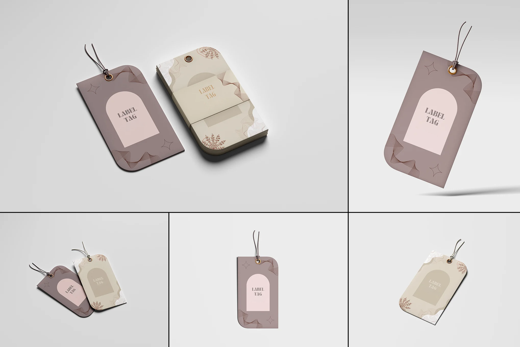gri zemin uzerinde bej tonlarında karton etiketler